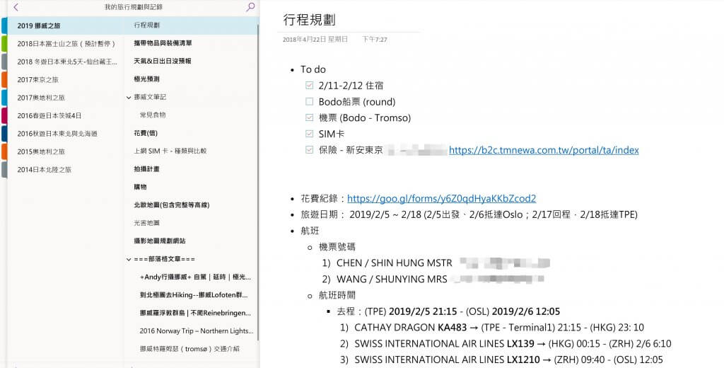 - OneNote (共享編排行程)